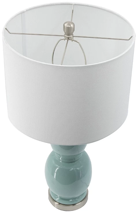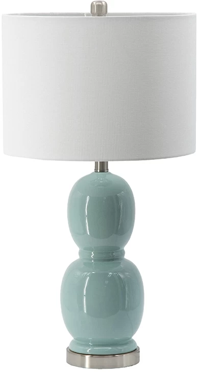 This stacked gourd table lamp takes a vintage profile and gives it a chic contemporary update that you’ll absolutely love. Crafted from ceramic in a sea green tone, its base is mounted on a chrome metal base, then topped with a white hardback drum shade. This piece is a wonderful personal touch for the most comfortable spaces in your home living rooms, dining rooms, and more.