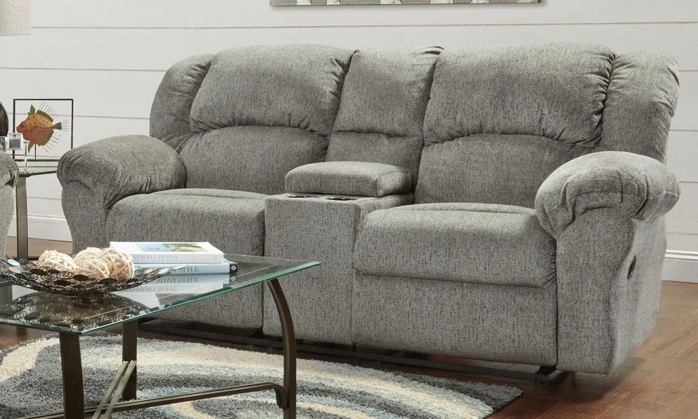 This cozy reclining loveseat offers a great relaxation space for your living area or family room. The gray fabric, plush pillow arms, and cushioned back make for a comfortable place to relax and entertain. The casual style fits well with a number of decorating styles to accommodate your home design. With a casual, contemporary silhouette, this loveseat features stylish, plush pillow arms provide comfort while pad-over chaise provides plush sink into seating. Comfy and classy, you can’t go wrong with this reclining loveseat.