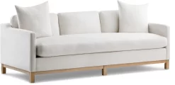 Features beautiful pillow arms, box seat cushion, attach back and dark wooden legs. Made with 100% polypropylene and wood. Clean lines design adds sleekness to the living room overall look. Create an inviting look for your home with this sofa