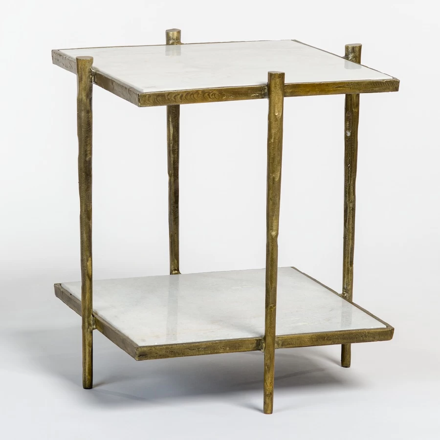 The Alder & Tweed Furniture Company Ren Cloud End Table Features Marble Tops and a Refined Brass Frame