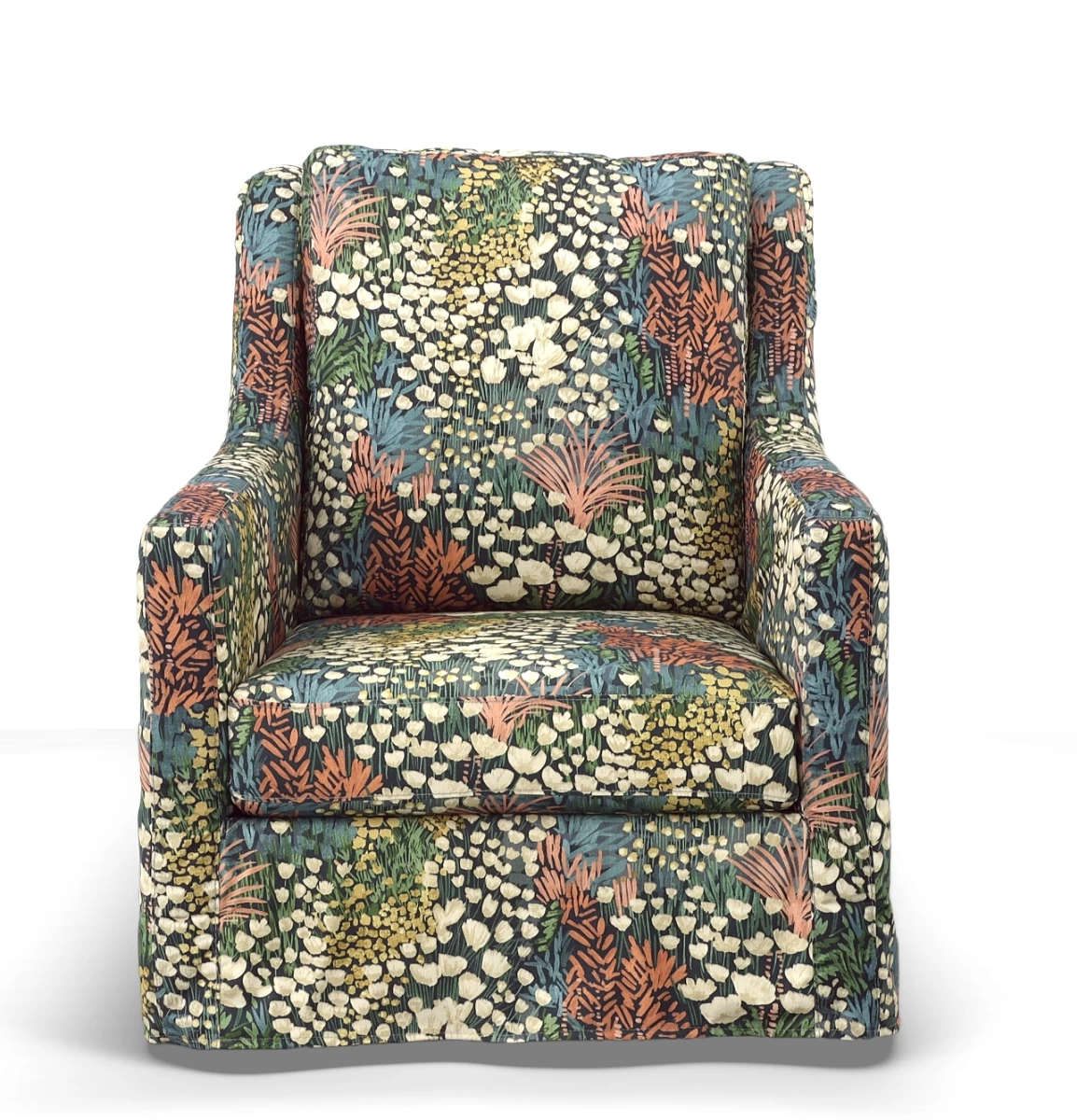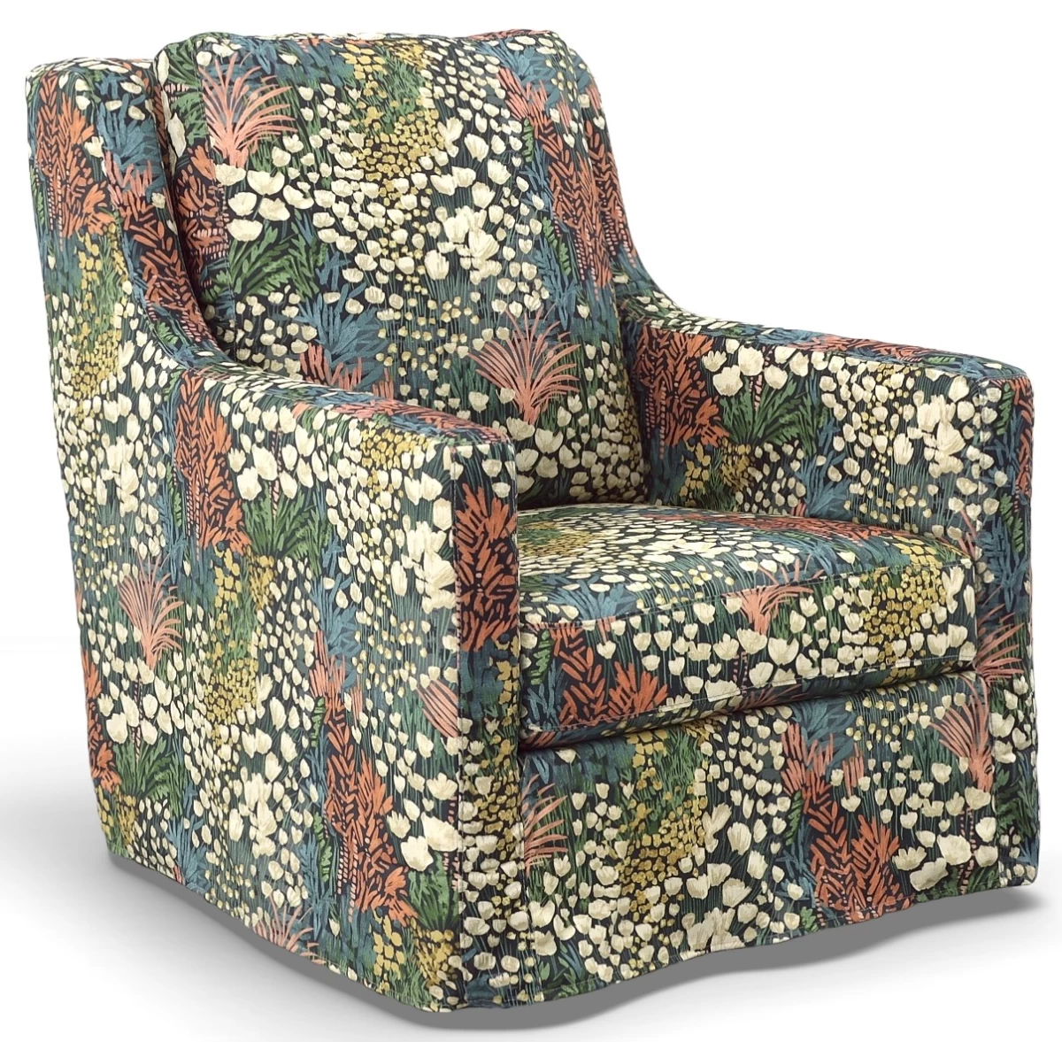 Accent your living space with this sleek and fun swivel chair. A compact build with sloped track arms brings a unique contemporary style. The sturdy swivel base and engineered hardwood frame provides durability for solid support.