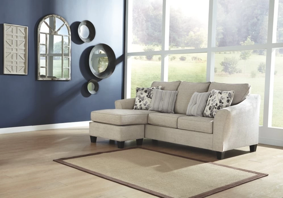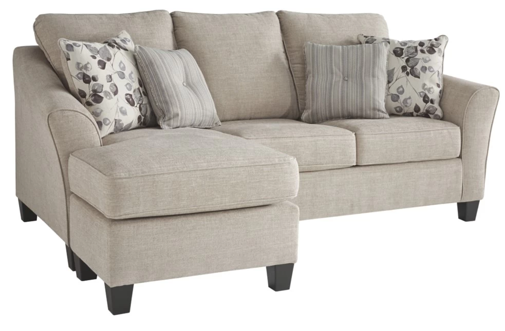 Raising understatement into an art form, this sofa chaise sleeper impresses with a tailored silhouette. Designed in a warm neutral color perfect in any contemporary home, this sofa chaise sleeper is wonderfully versatile with loose seat cushions that allow you to flip the chaise from left to right. Coordinating toss pillows complete this look for a style that feels right at home. Crafted of quality memory foam, a queen pull-out mattress comfortably accommodates overnight guests.