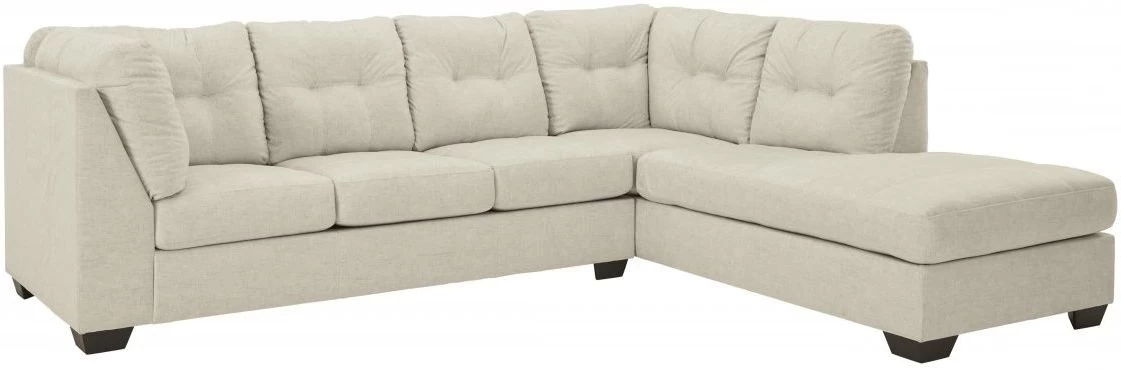 Includes 2 pieces: right-arm facing corner chaise and left-arm facing sofa