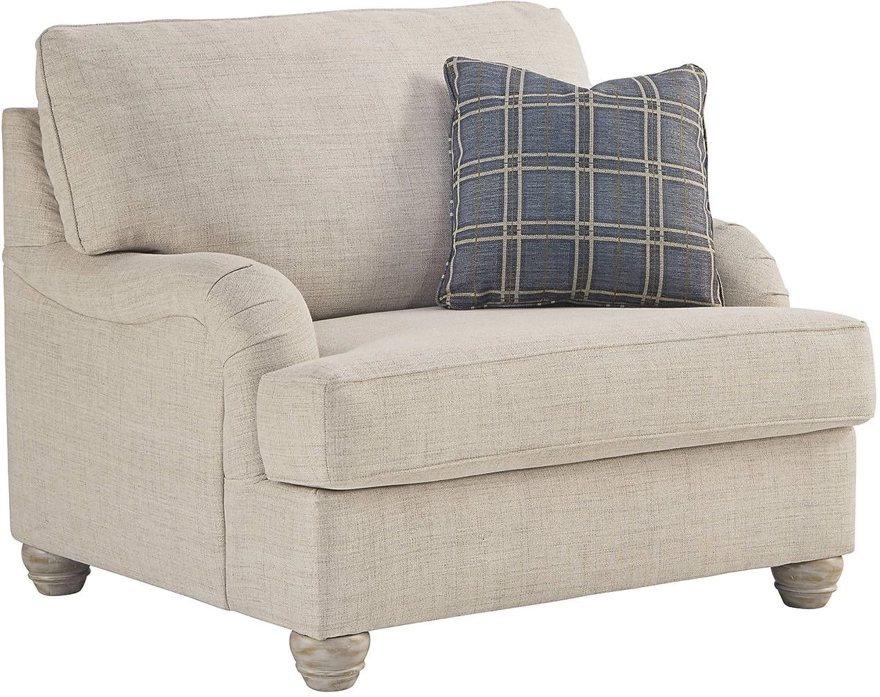 Go ahead, make your cat jealous with your chilling prowess. With an ample, ultra-soft seat cushion, gently curved arms, and massive back cushion, you can lounge like a pro. Beautifully designed to accent any space, this chair offers light and stylish good looks with turned faux wood feet and billowy lines on soft, woven upholstery. You’ll thank yourself when you fall into the plush comfort of this generous chair.