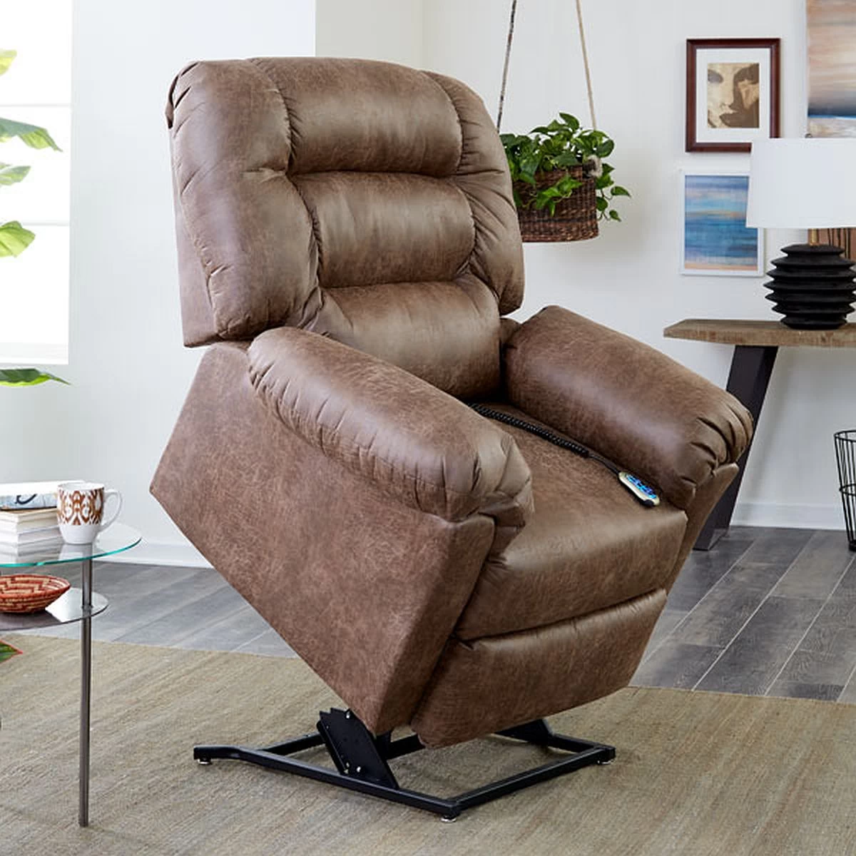 This gentle giant is part of the Beast recliner collection. It has a beefed up frame construction and seating system to handle heavier weights and more day-to-day usage. Comfort rated for 400 pounds, this lift chair recliner comes with two motors – one to function the recliner kickout and lift, and the other to control the back. This allows you to stop your resting position at virtually any point you feel comfortable.