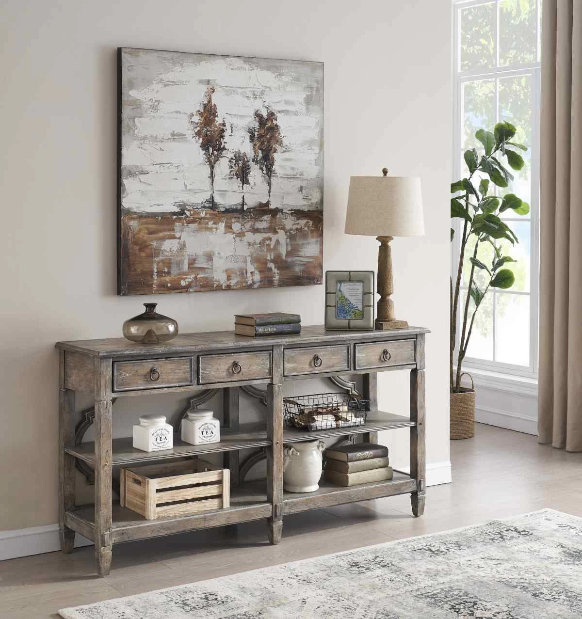 Perfect for your pens, papers, keys, and remotes. Whether in your entry, kitchen, or den, this lovely Console will be a welcome addition.