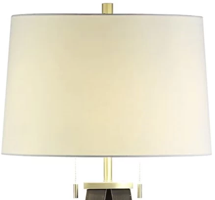 Lennon floor lamp 64.5″, metal bronze and antique brass finish with off-white linen tapered shade.
