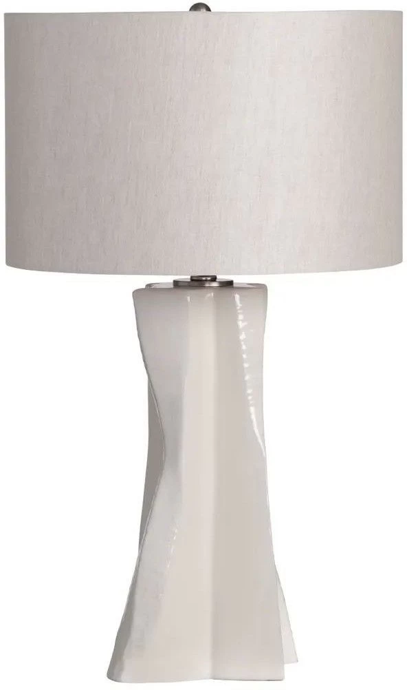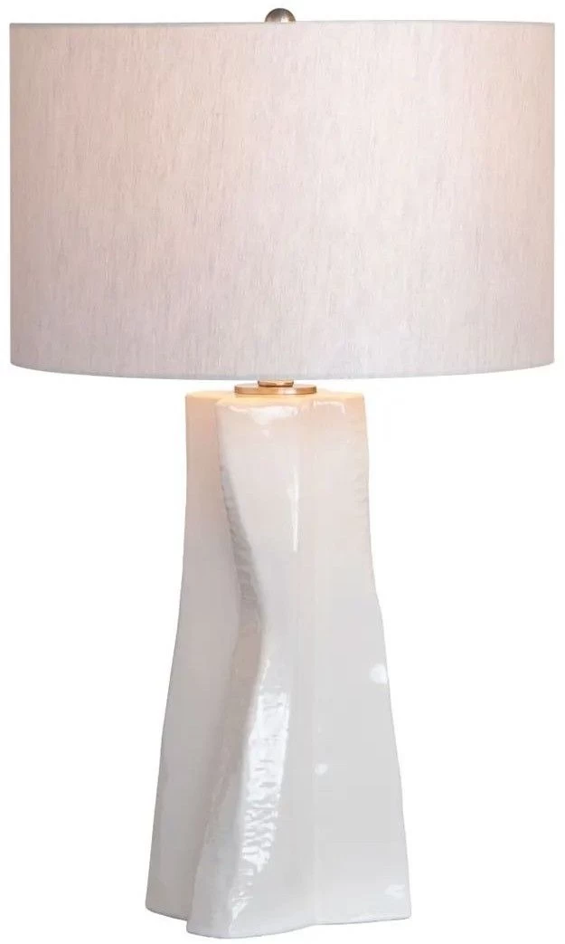 This table lamp will look beautiful in any room of your transitional style home or office decor. The base has four sides with a raised ridge separating each side, giving it a unique shape almost like a squash blossom with the wider part of the base being at the bottom to stabilize the fixture.