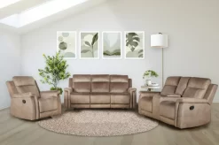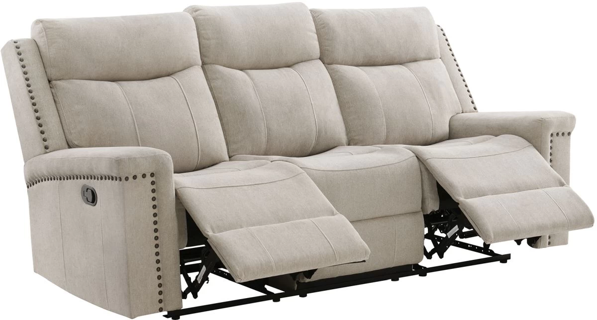 The elegant decorative nailhead trim adds a touch of sophistication to the set’s modern design. Complete with plastic foot pads, this set ensures stability while protecting your floors. Upgrade your living space with the Ingram Motion Set and indulge in a combination of comfort and elegance.
