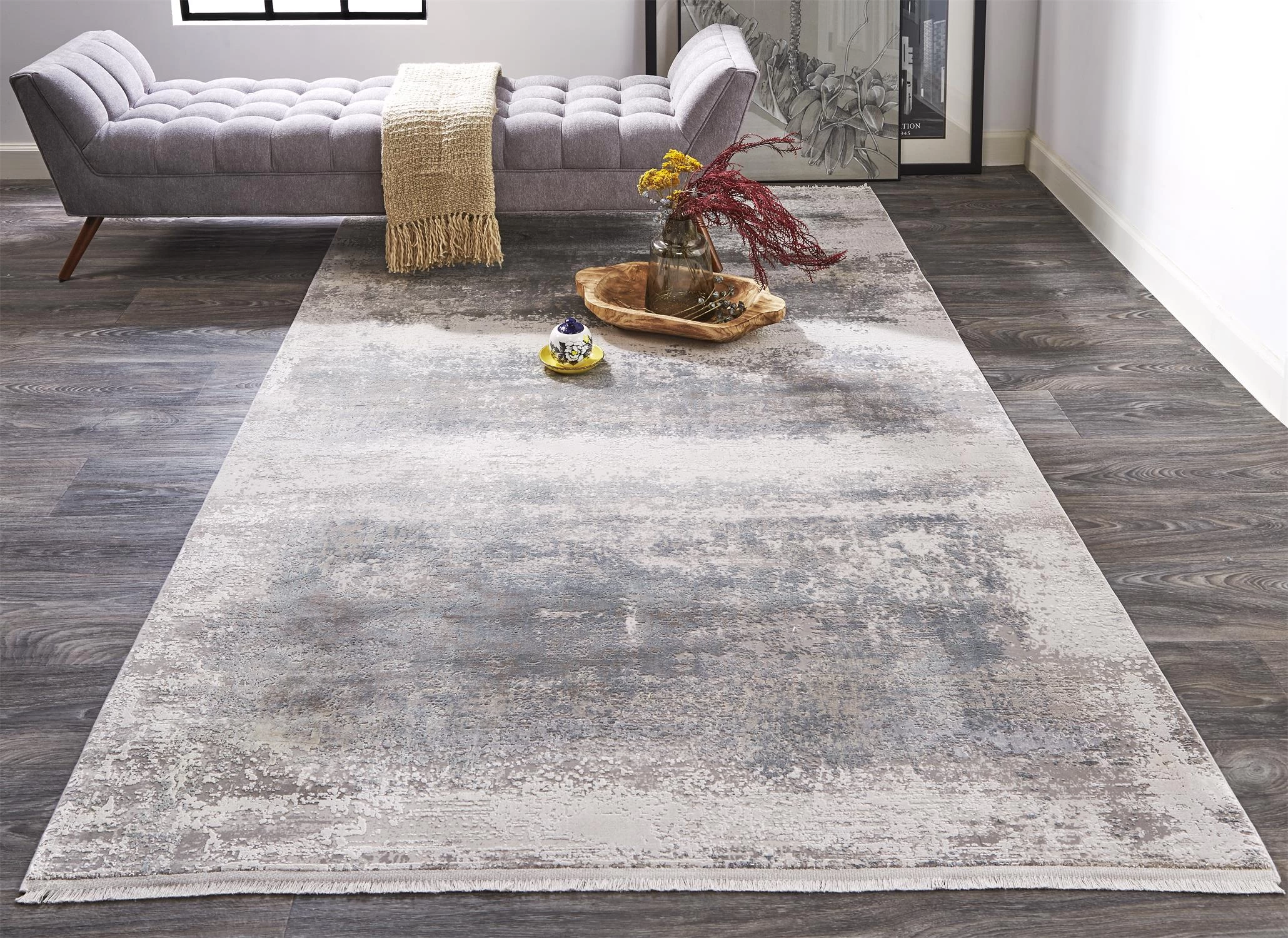 Inspired by the elegant architecture and poetic colors of Cadiz Spain Feizy’s Cadiz Collection features approachable designs in soothing hues that gently fold into peaceful gradients. The intricately detailed patterns colors and textures of handmade rugs are re-interpreted in an ultra-dense machine-woven pile affording an opulent look at a more accessible price point.