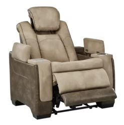 The power button adjusts the headrest and recline independently, letting you change angles from an upright to a fully reclined position – but not lose your ability to watch your favorite game or show when fully reclined by using the power headrest option to raise your head and neck.