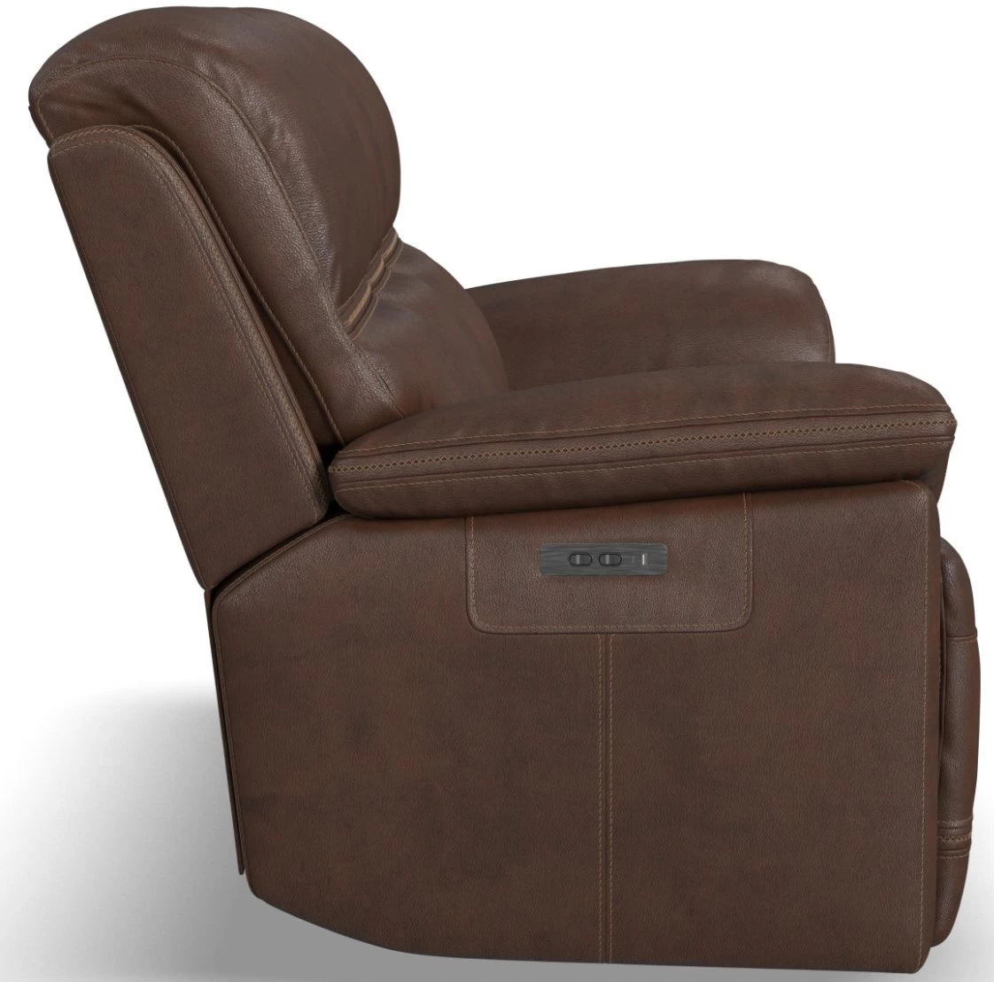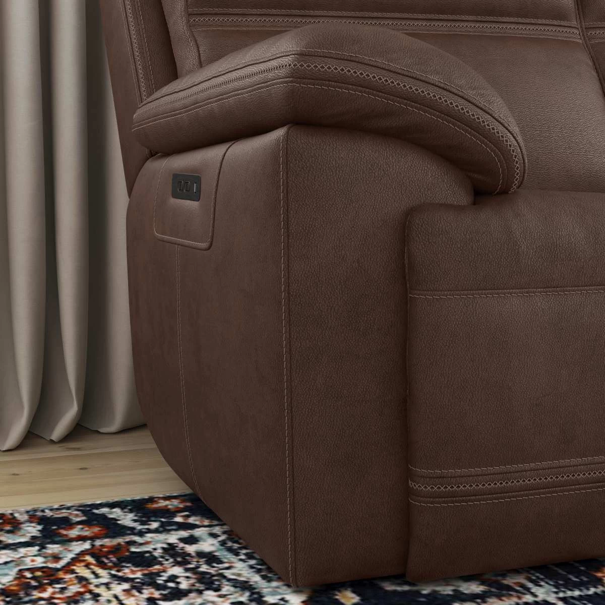 An attractive cross-stitch pattern on the back, armrest edges and footrests add distinctive style, while the waterfall chaise footrests and pillowy arms provide comfortable support. Built-in USB ports keep mobile devices conveniently charged and ready for streaming. Two color choices of luxurious top grain leather ensure the Jackson power reclining sofa will remain looking beautiful in your home for years to come.