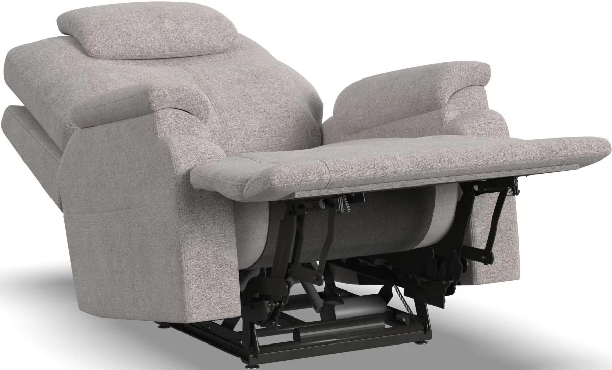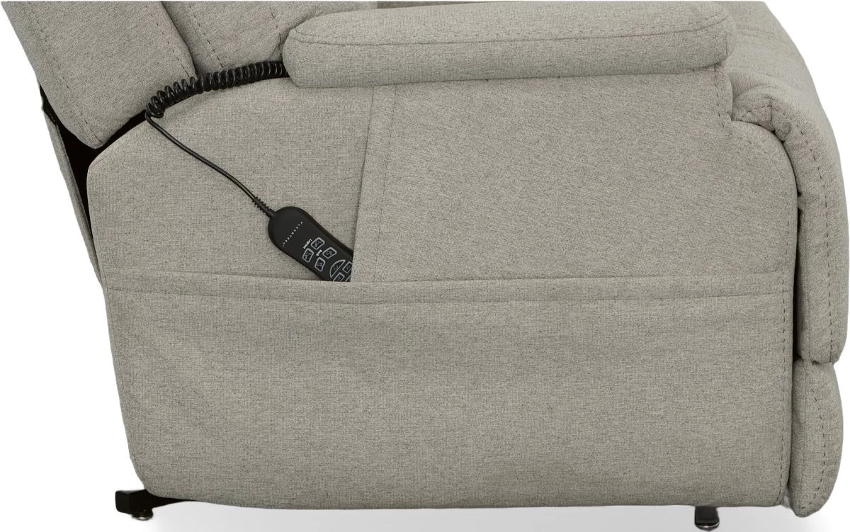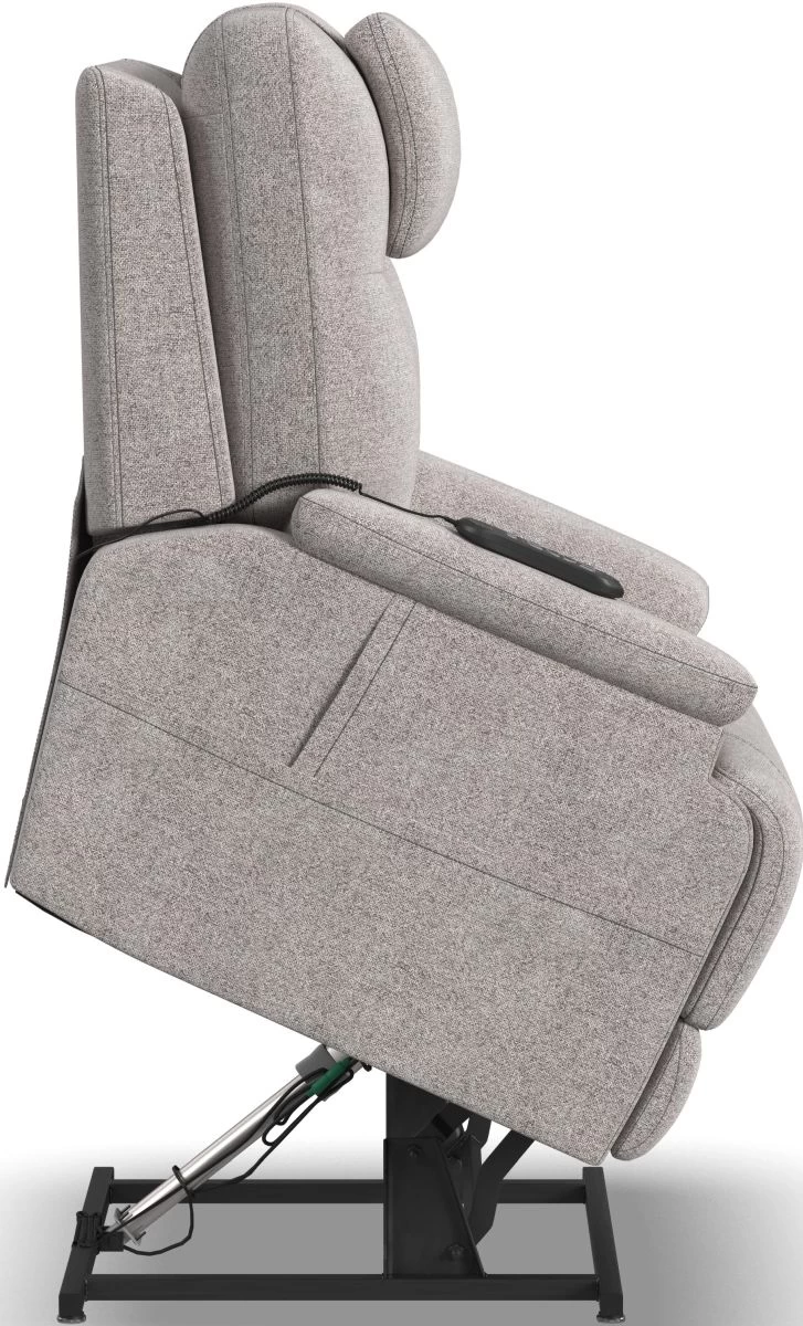 The zoned memory foam comfort areas in the backrest and seat, padded arms, and waterfall chaise provide surrounding comfort. Triple power lets you customize the footrest, headrest and lumbar positions, Zero Gravity puts you in a state of weightlessness, and power lift provides assistance when standing. This recliner is armed with reliable performance fabric upholstery that repels stains and spills, while being easy to clean. Complete with our Blue Steel Spring at its core, you will achieve full relaxation and rest peacefully with the Zecliner.