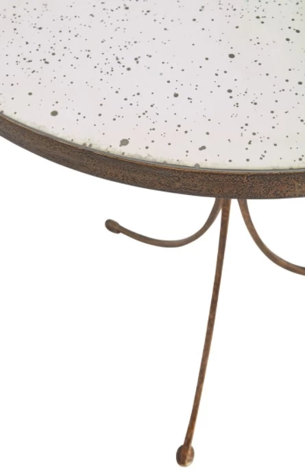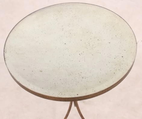 Iron banded top of antiqued mirror.