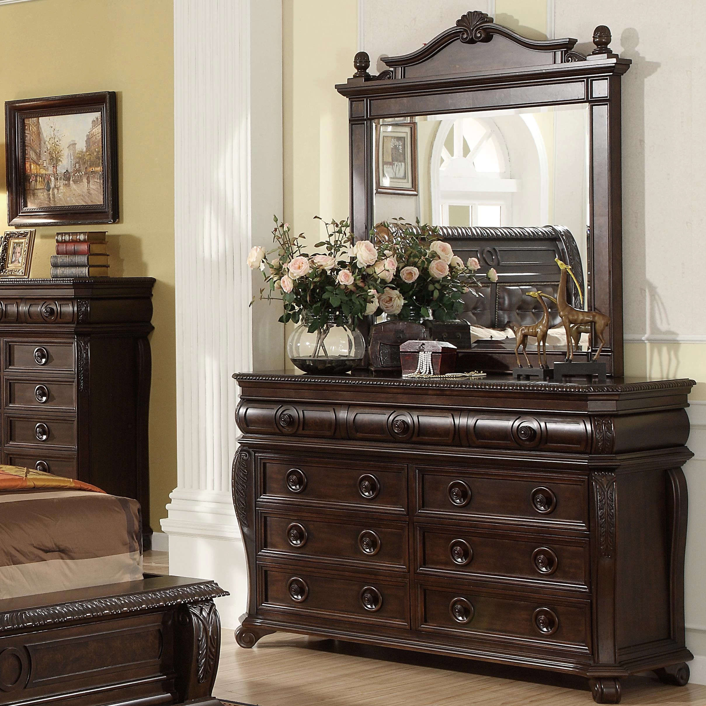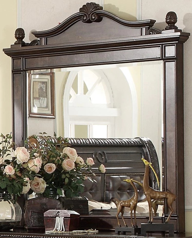 This mirror is sure to please with attractive style and size. The piece has a wealthy medium brown finish and different detailing to match the dresser. Add the dresser with this mirror to complete the look!