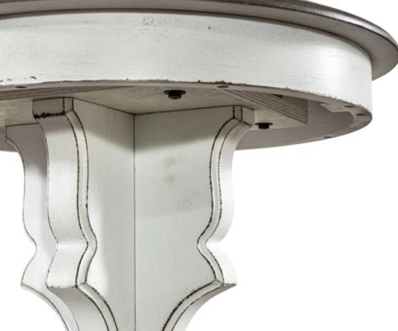 Warm antique finishes and artistic distressing along with grand scale create a piece to be passed to generations.
