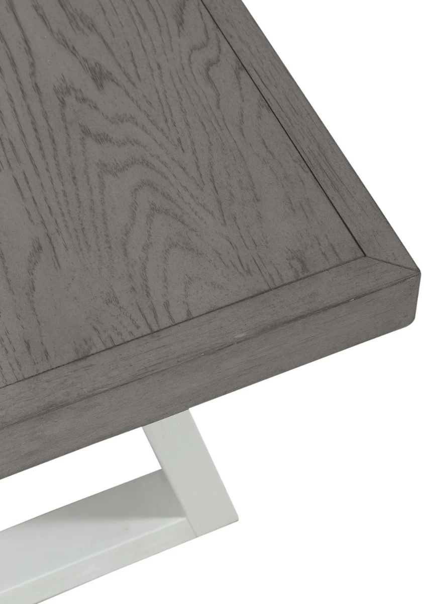 Finish: two-tone shell white and driftwood finish