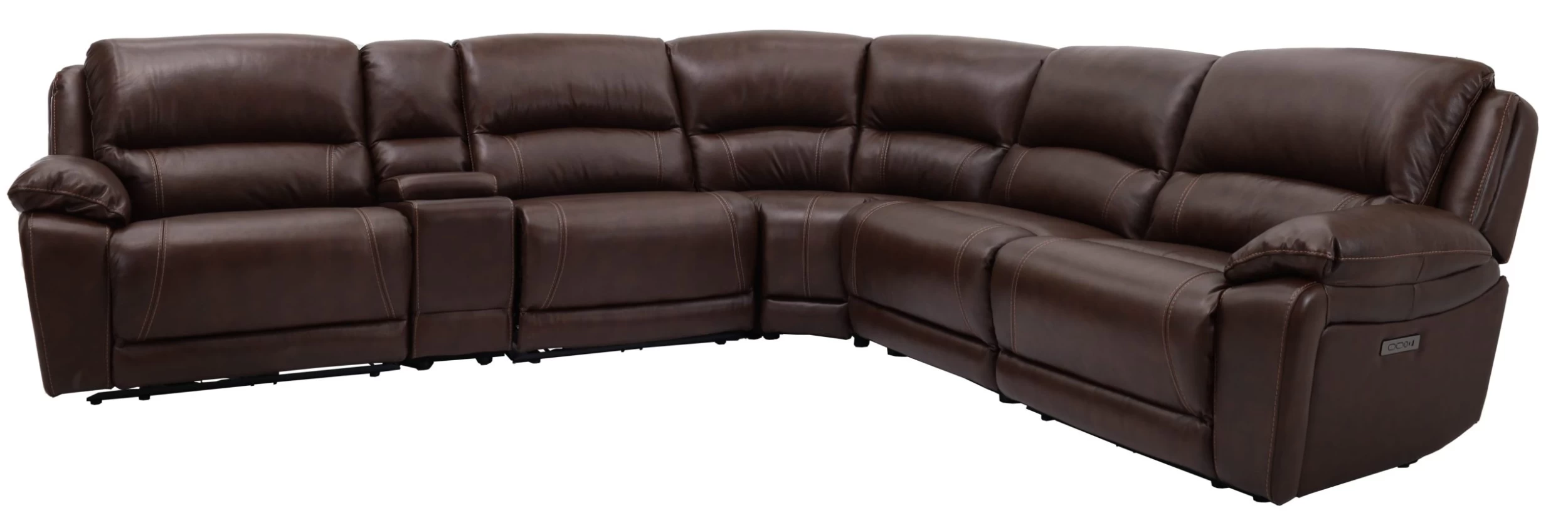 This 6 piece brown sectional from Man Wah features power recline seating with power headrest. This is the perfect sectional to lay back and relax with your family!