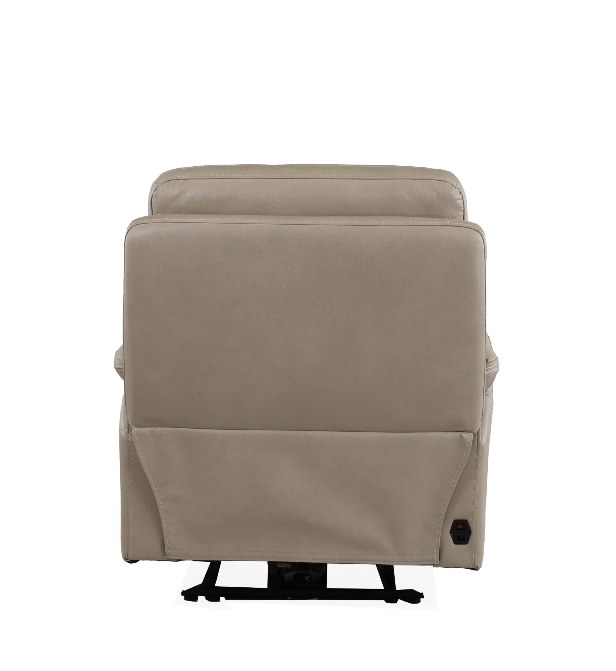 This power recliner is featured in an ivory leather. It also has zero gravity recline and power headrest for ultimate comfort.