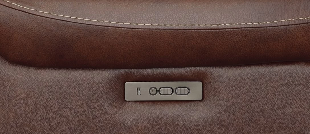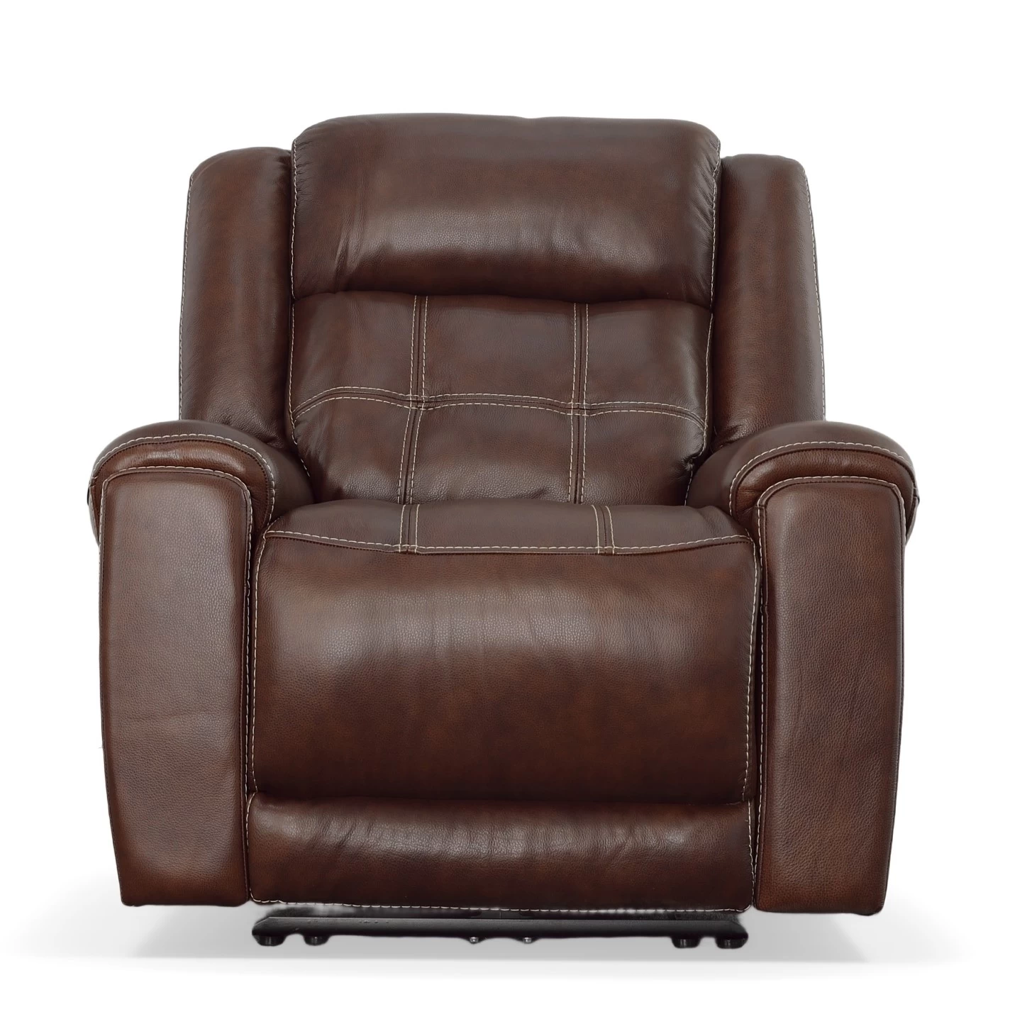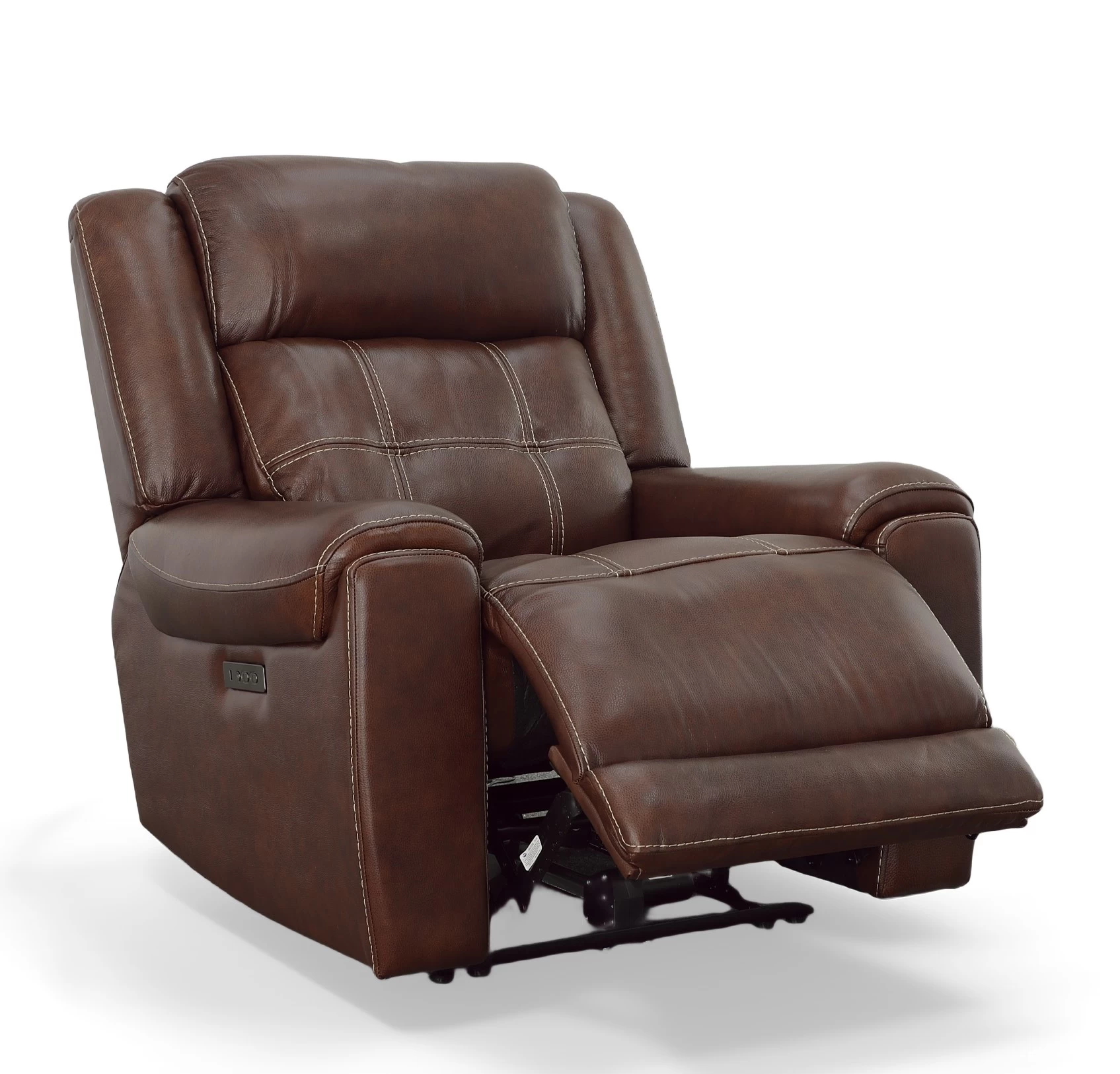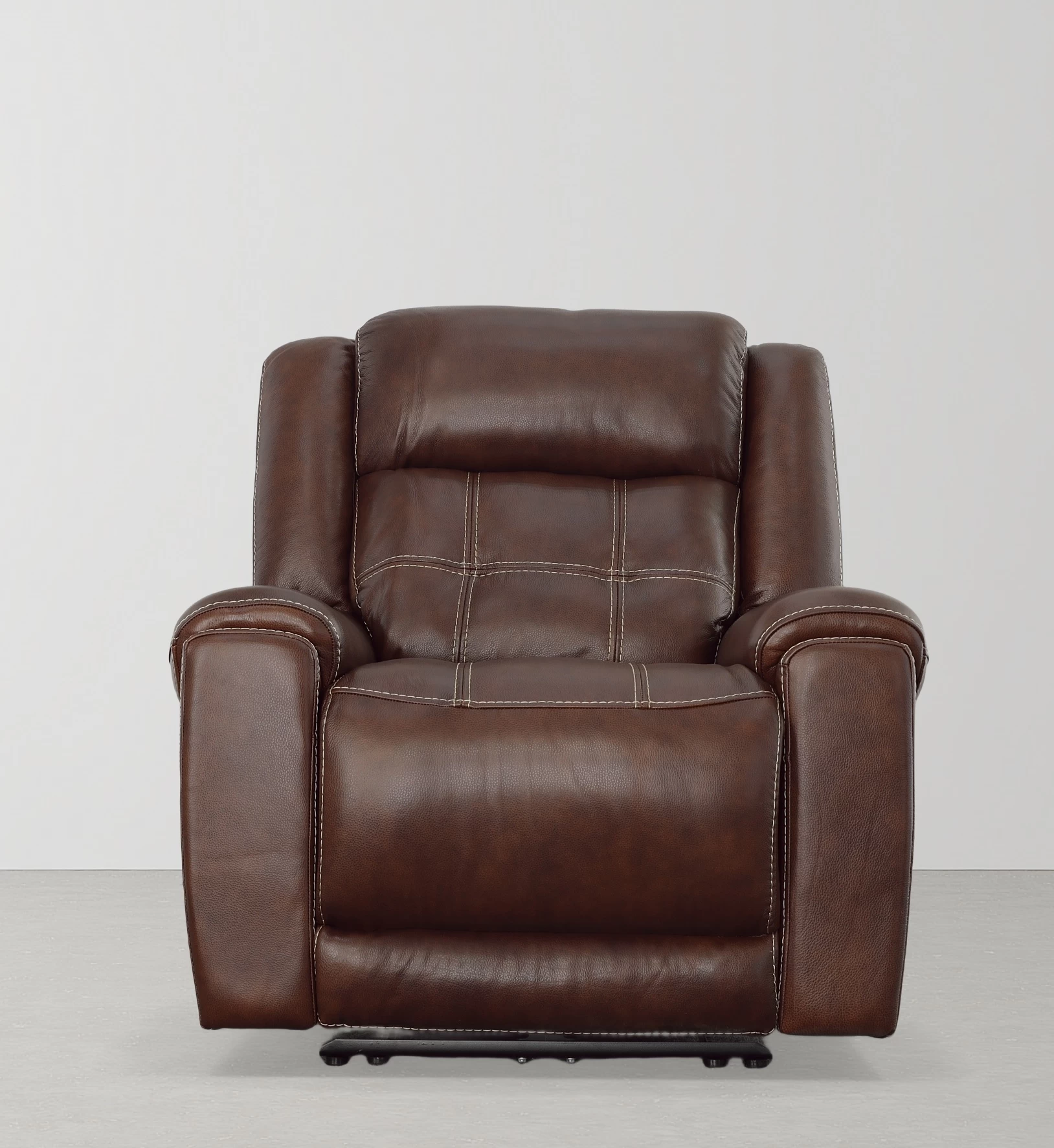 This leather recliner from Man Wah features power recline seating with power headrest. This is the perfect recliner to lay back and relax!
