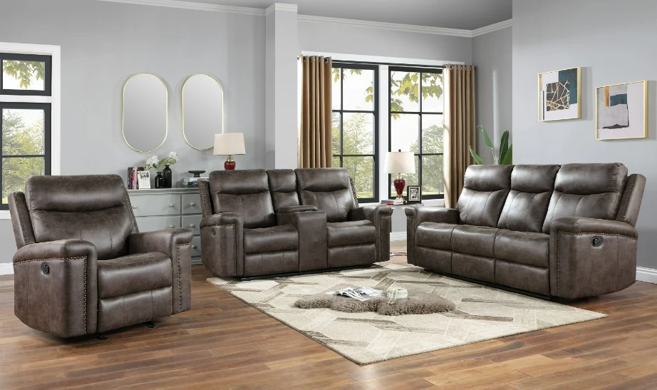 | Sofa Loveseat Features | Nailhead Trim, Drop Down Console |