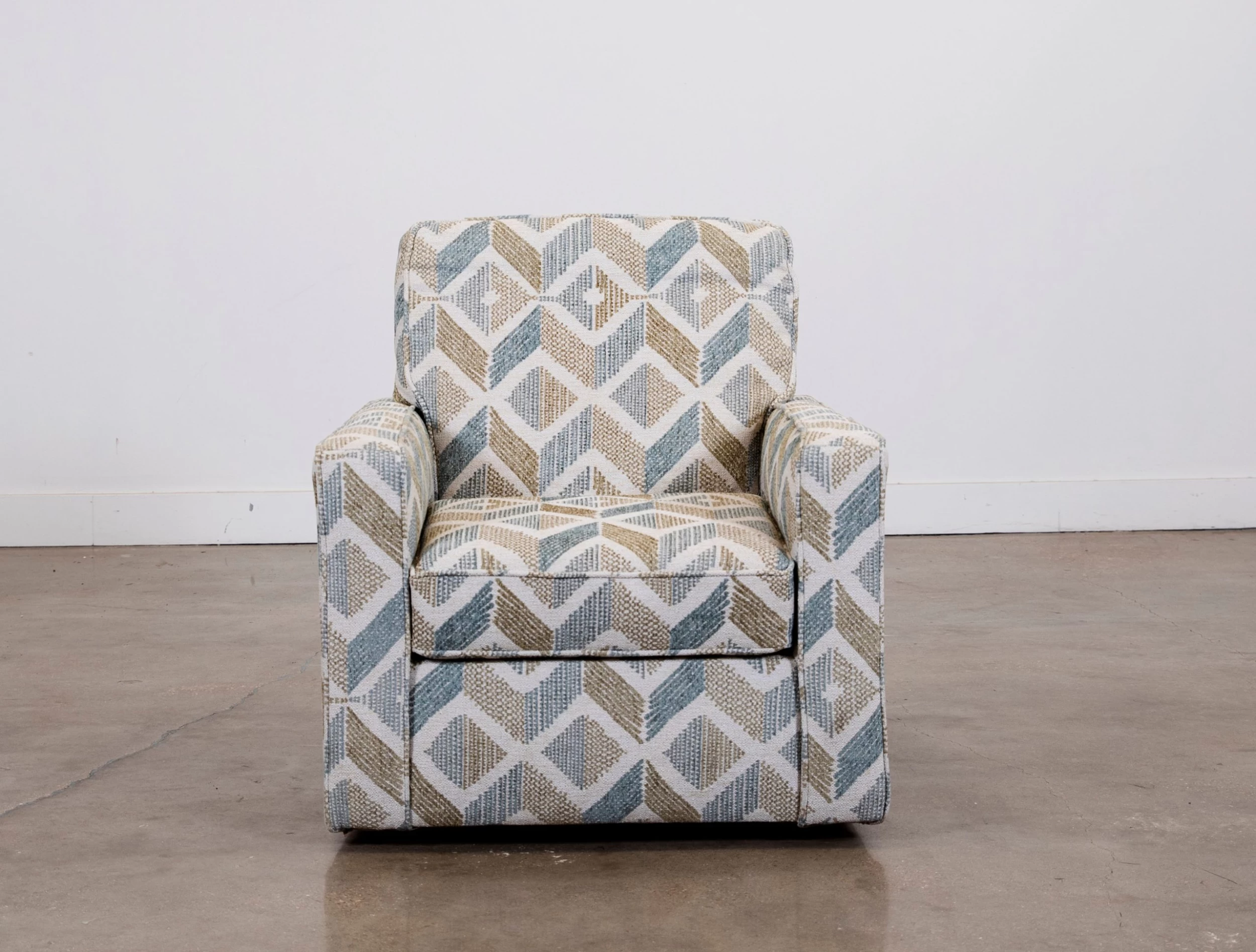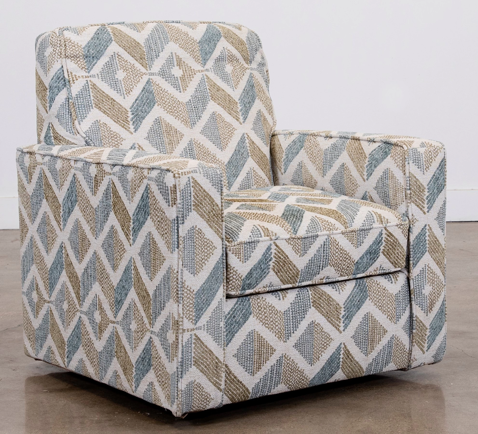 This swivel chair’s sloped back and track arms make it very comfortable while also being very stylish! The taupe and blue colors are perfect to pair with the 3100 Fawn group that have the coordinating toss pillows. Pair this swivel chair with the sofa, loveseat, and ottoman to complete your living area!