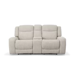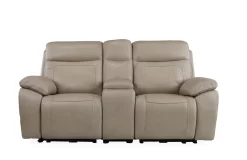 Man Wah Ivory Leather Power Zero Gravity Reclining Console Loveseat