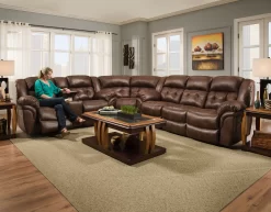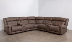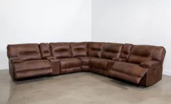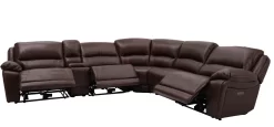 Man Wah Brown 7 Piece Brown Leather Power Reclining Sectional