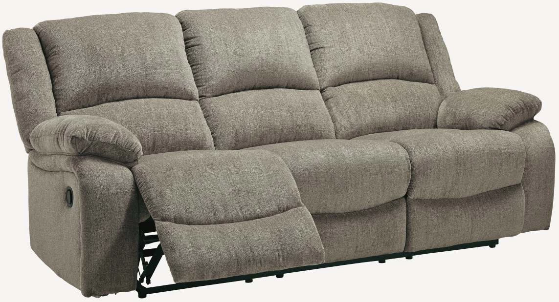Built for luxury, this reclining sofa lets you kick back in reliable style. The thick, softly textured chenille upholstery provides a comfy surface on which to lounge. With bustle back construction and thickly cushioned armrests, this piece gives you the dependable support you need to unwind after a trying day.