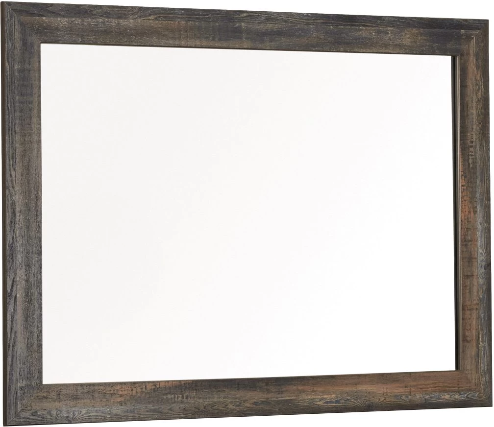 Rustic and charming, the Drystan bedroom mirror is bordered in a replicated wood grain frame and attaches to the back of the Drystan dresser.