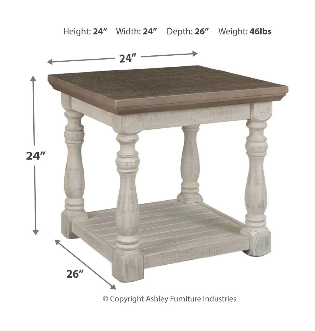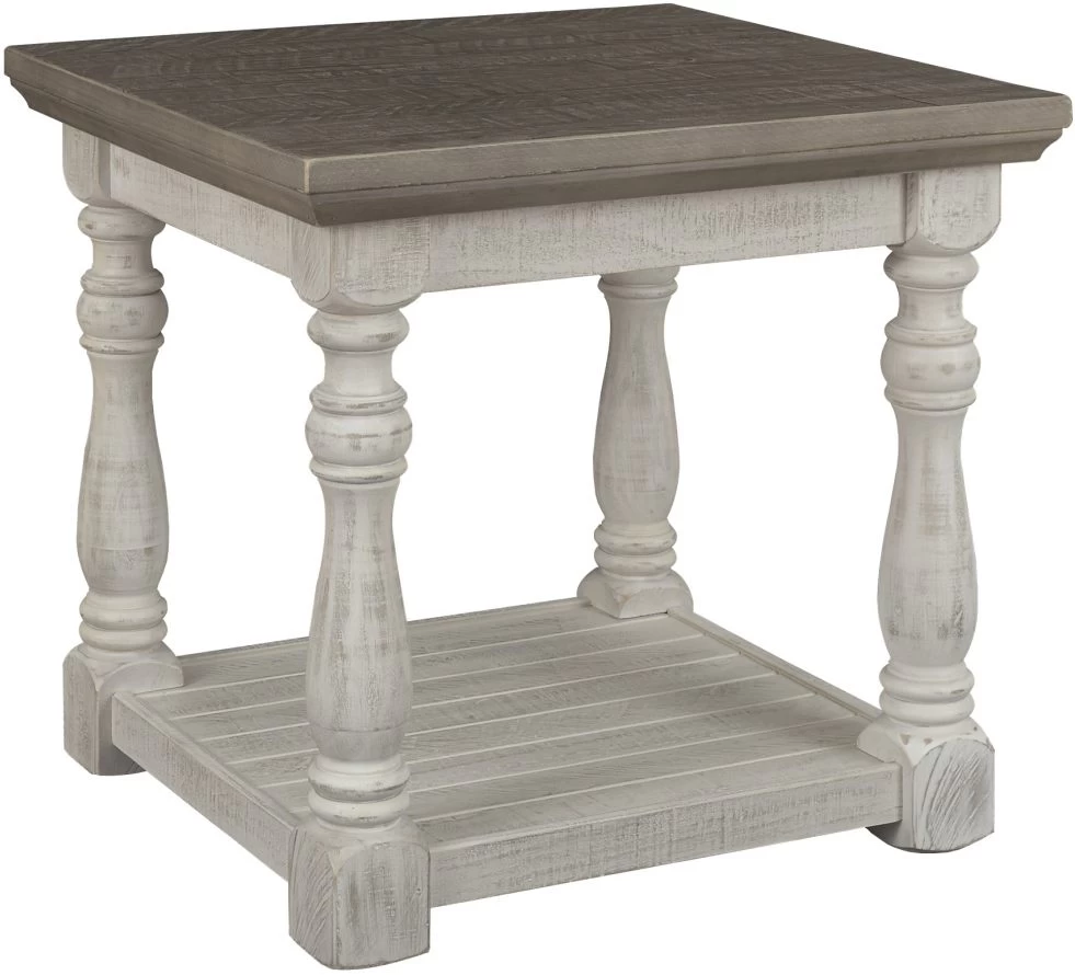 Show your home sweet home some love with the Havalance end table. Crafted with turned legs and a slatted fixed shelf below, this table is perfect for staging décor pieces, magazines, and more.