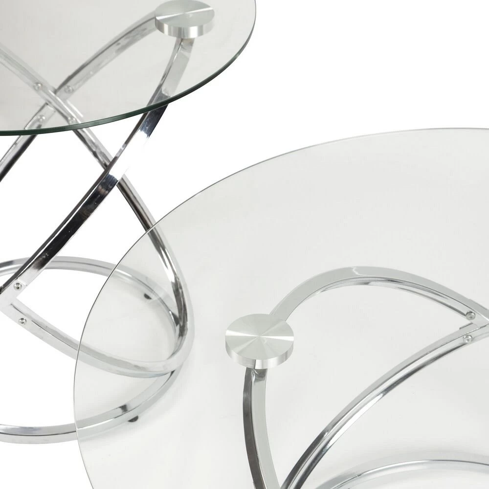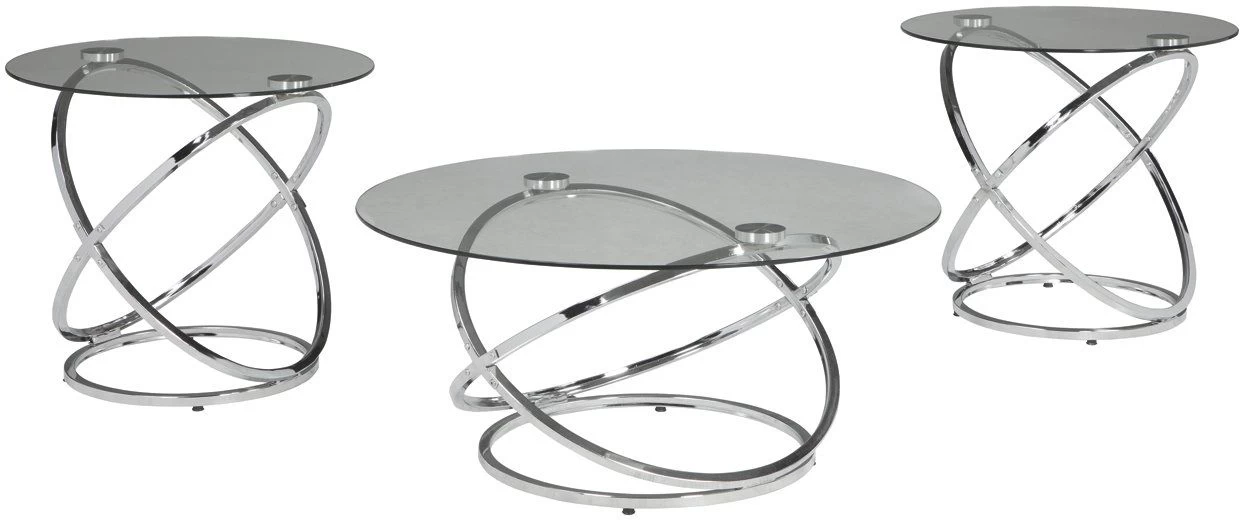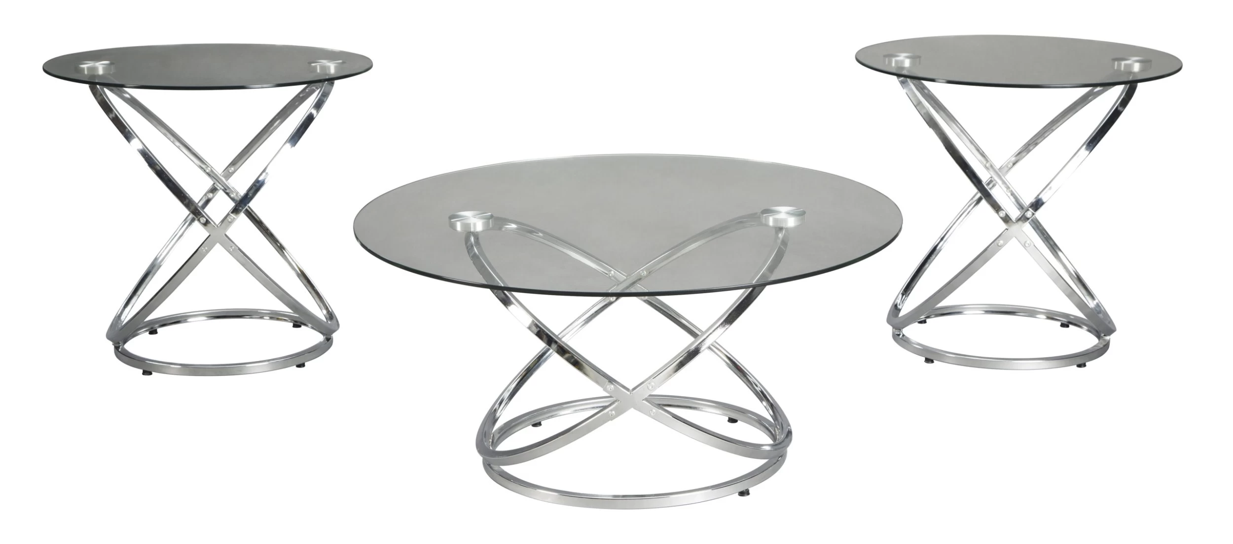 Stage your home with the light-capturing accents of the Hollynyx 3-piece occasional table set, fitted with a chrome-tone finish and tempered glass tabletops with polished edges. This trio includes 1 coffee table and 2 end tables for all-around cohesive style. This item is part of the Hollynyx collection; listed features are found across the collection and do not all apply to this piece. Please contact us for availability.