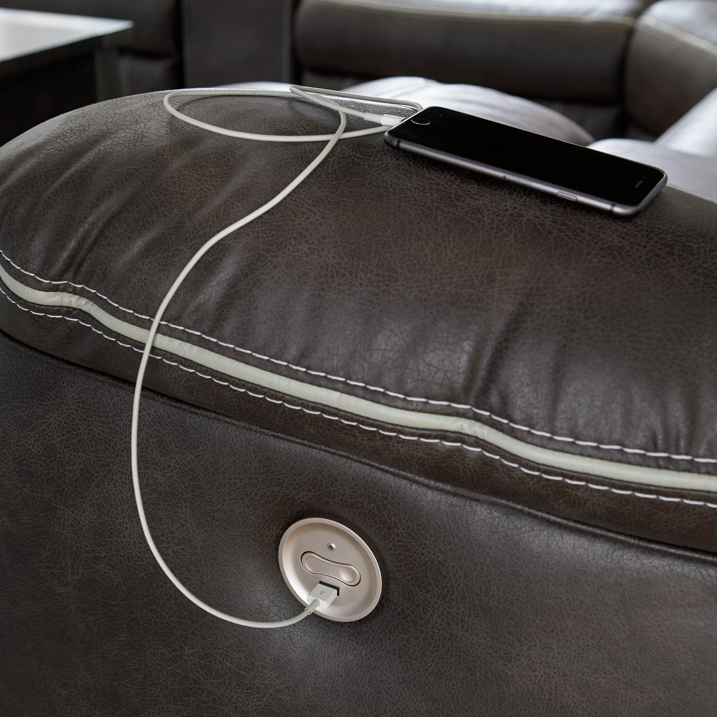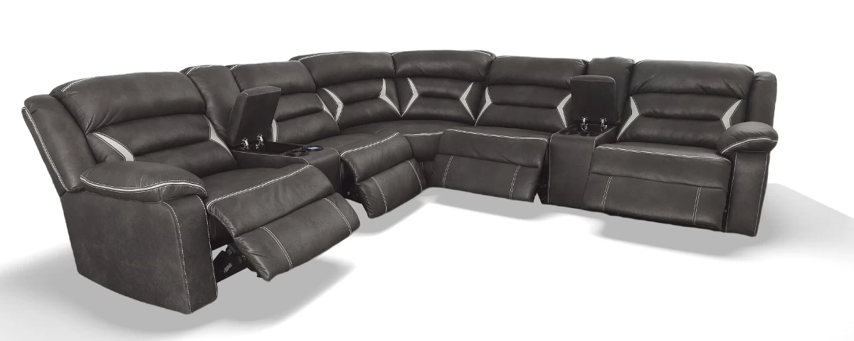 Rest assured, sumptuous pillow top armrests and sleek channel cushioning feel every bit as good as they look. Enlightened elements include a power control with USB plug-in and blue LED lighting (by the cup holders) to create a home theater experience worthy of A-listers.