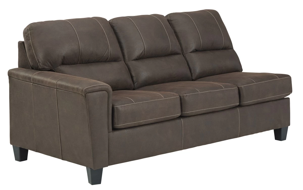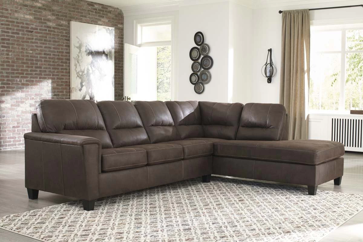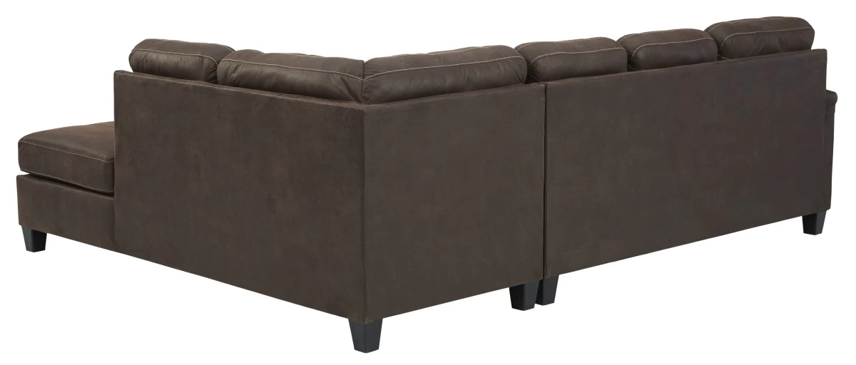 If you love the cool look of leather but long for the warm feel of fabric, you can take comfort in the McCammon 2-piece sectional. Wrapped in a fabulous faux leather with a weathered hue and hint of pebbly texture to resemble the real deal, this decidedly modern sectional proves less is more. Elements include angled side profiling and track armrests wrapped with a layer of pillowy softness for that little something extra. Prominent jumbo stitching and clean-lined divided back styling lend fashion-forward flair. Assembly required for this product.