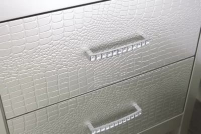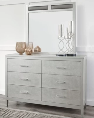 The Olivet collection from Signature Design by Ashley® is your home’s connection to luxury design style. For a dose of high-end accents in faux-shagreen, faux-leather upholstery, and a silver finish that scream opulence, look no further than this collection.