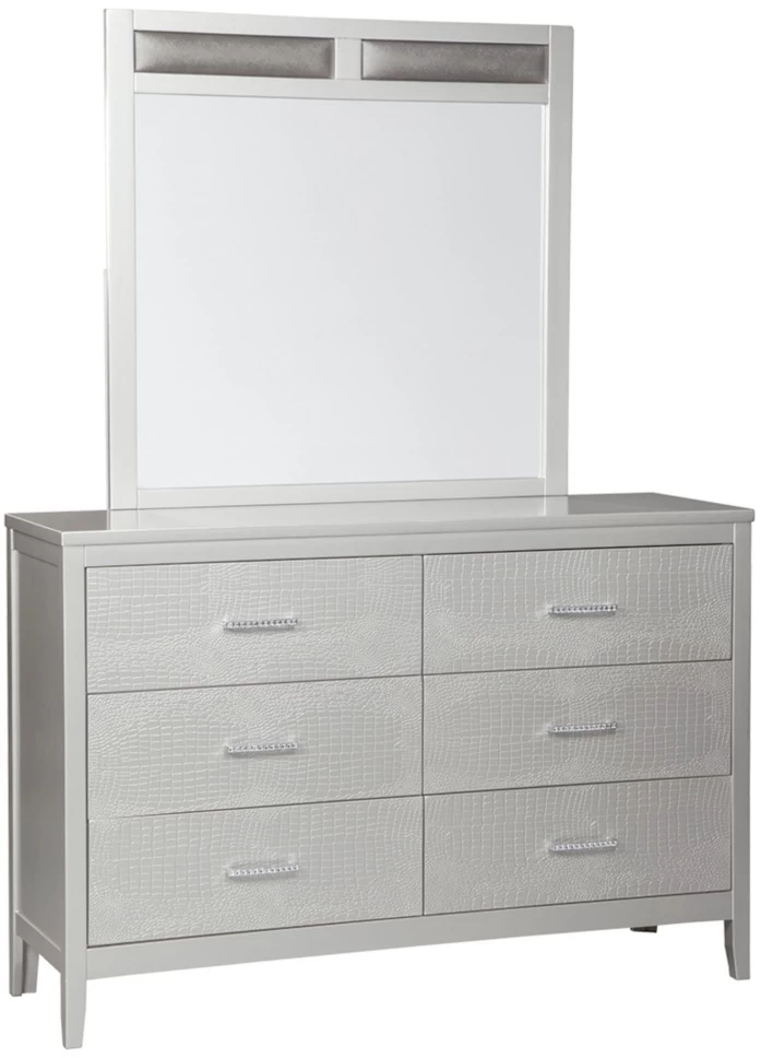 Pair this Olivet bedroom mirror with faux-leather upholstered inserts to the compatible dresser for bold style and function.