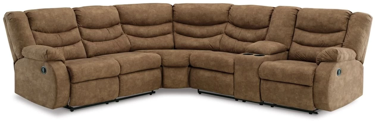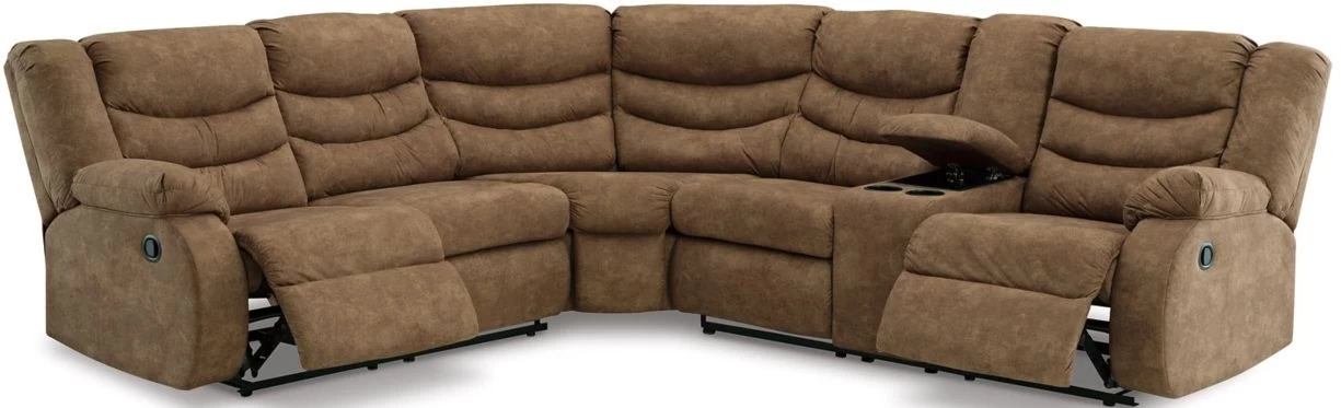 Includes 2 pieces: left-arm facing reclining loveseat with half wedge and right-arm facing reclining loveseat with half wedge console