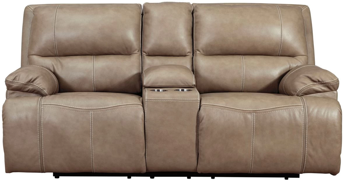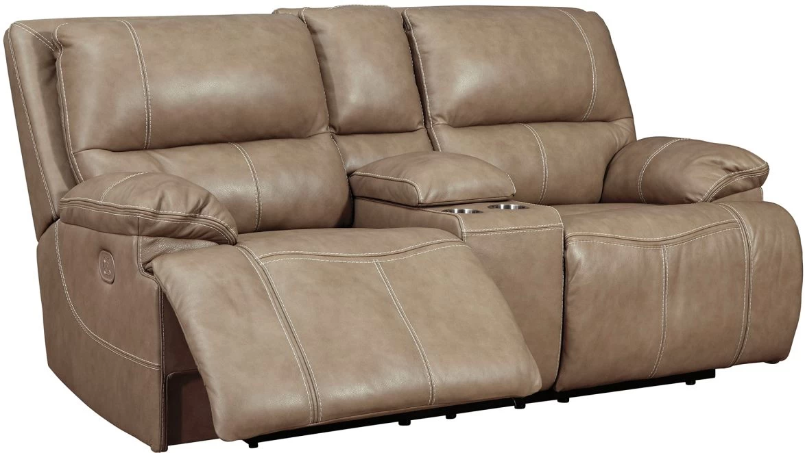 Share the experience of indulgent comfort with the Ricmen reclining loveseat featuring power reclining, an adjustable headrest, and console storage with 2 cupholders.