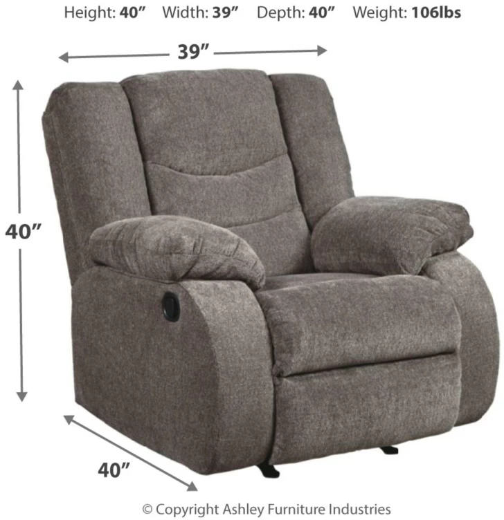 There’s always room for some downtime on the laid-back design of the Tulen rocker recliner. Pull the tab and slip into a reclined position or mellow out with the gentle rocking mechanism. With ultra-soft upholstery, it’s an all-in-one relaxation experience.