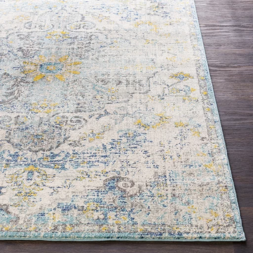 Colors: Beige, Saffron, Light Gray, Teal, Charcoal