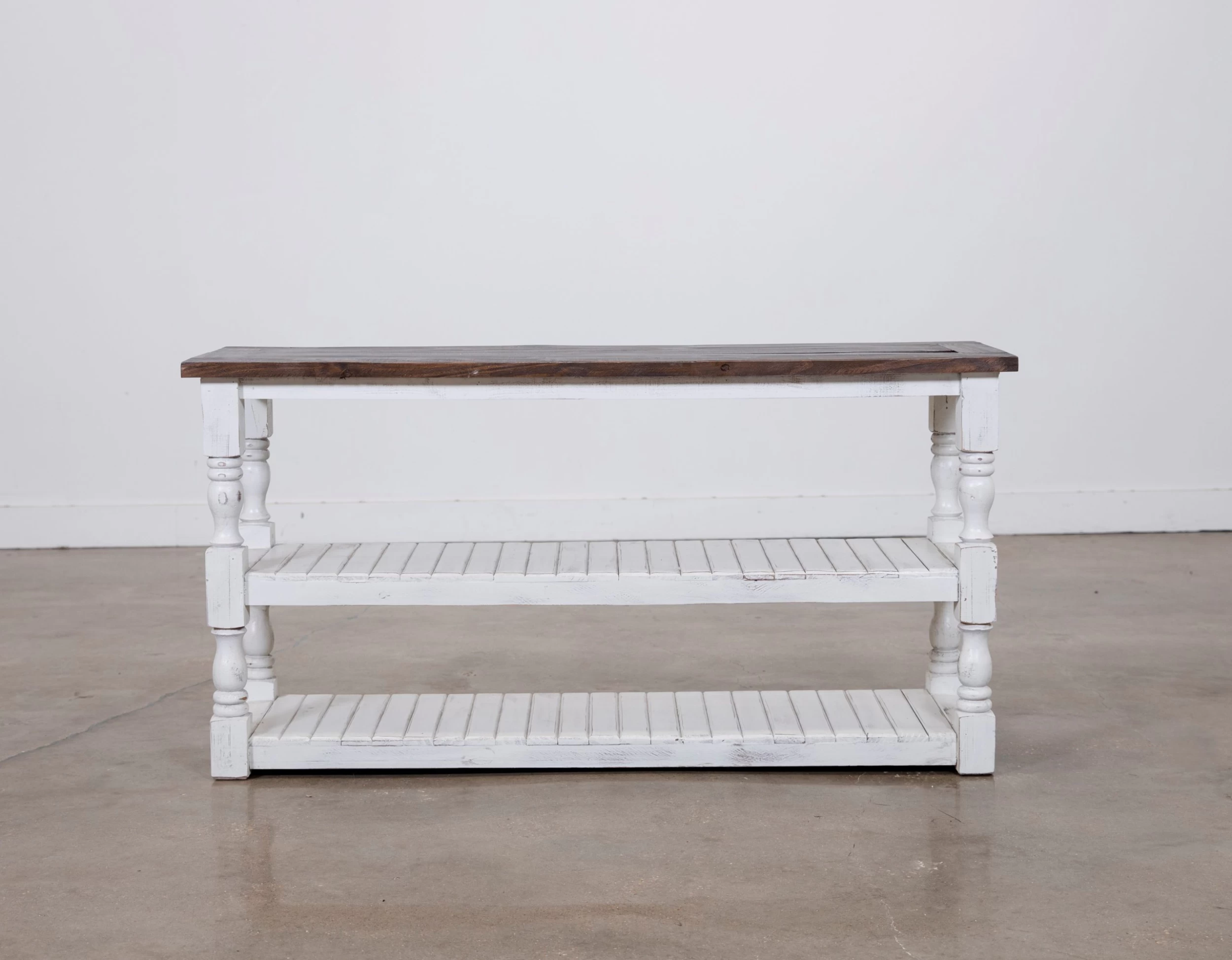 Vintage Furniture’s Alena Nero White/Ash Sofa Table.. Vintage Furniture is handmade of Solid Wood Construction and all hand-finished to create a unique quality look made to the highest standards of craftsmanship.